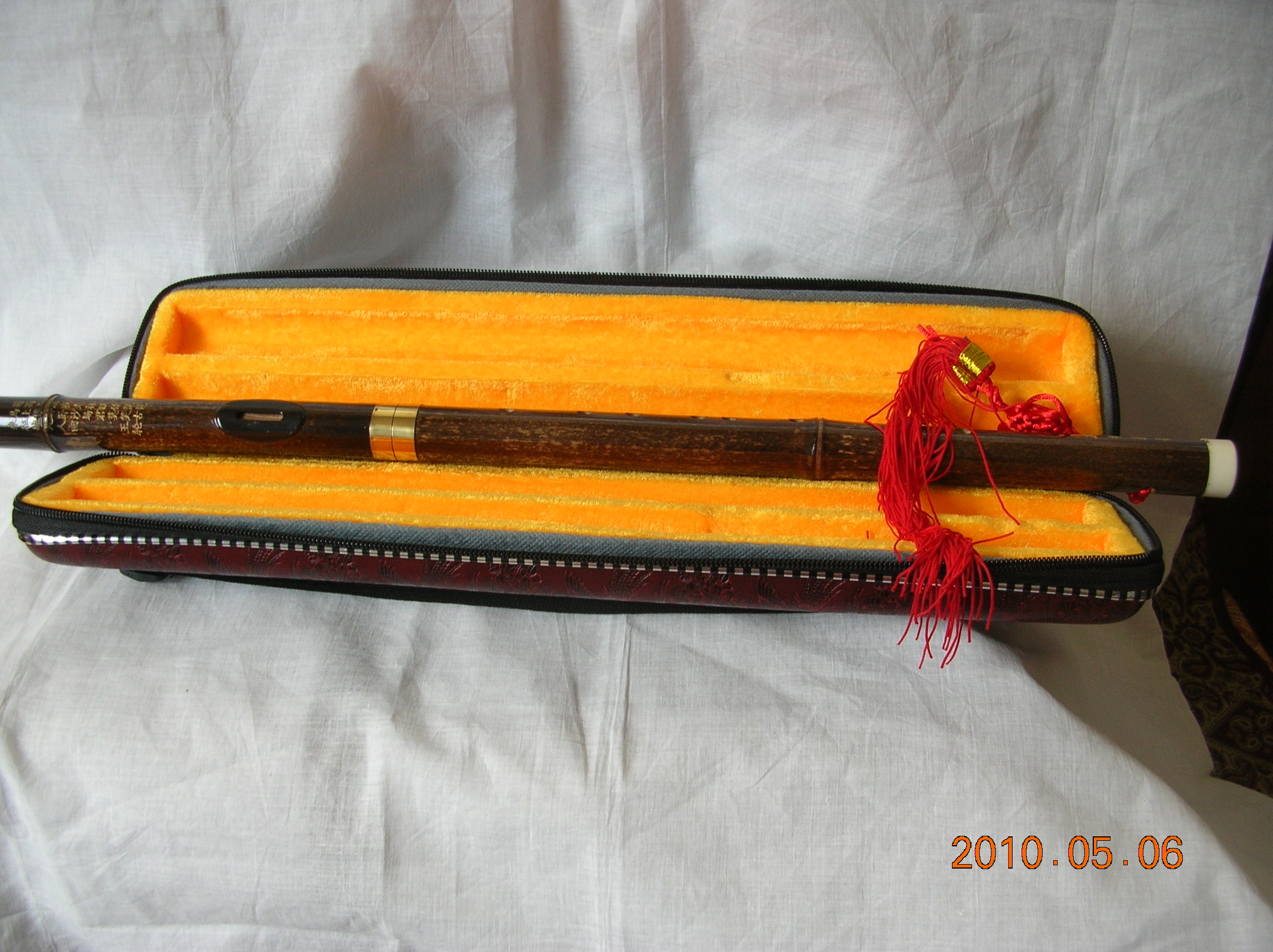 Flauto cinese traverso in bambù dotato di ancia metallica.
