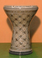 Strumento musicale a percussione del gruppo dei membranofoni, utilizzato tradizionalmente in Nord Africa e in Asia centrale. Si ritrova anche nella musica popolare dei paesi dell'Europa orientale che hanno subito l'influenza dell'Impero ottomano e nella musica egiziana. Tipico tamburo a calice il cui fusto può essere in legno, ceramica o metallo, ed è spesso finemente decorato. Quelli in ceramica sono dotati di pelle di capra o di pesce (razza) che conserva meglio l’accordatura in caso di umidità. I metallici montano pelli sintetiche per eliminare i problemi dell'accordatura e per la loro versatilità e robustezza sono preferiti da chi cambia spesso situazione atmosferica (ad es. in tournee). Due le sonorità principali dello strumento: un suono basso, il dum, e uno più acuto, il tek. |