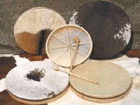 Tamburo a cornice a due membrane, di pelle di capra. Il telaio, costruito in legno sottile, è di solito poco profondo e perciò il suono è piuttosto debole. E’ un tamburo tipico delle Americhe, usato per lo più dai pellerossa a scopo rituale. |