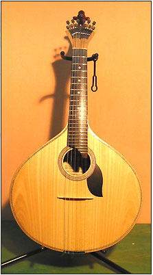 Strumento a corda pizzicata. Ha la cassa di risonanza a forma di pera, sei paia di corde ed il manico a forma di ventaglio. Per la sua accordatura si usano chiavi e per suonarla si utilizzano spesso penne dette "unhas". Oggi, si suona prevalentemente per accompagnare il fado. L'accordatura dello strumento è "aperta" ed è, dalla nota più alta a quella più bassa, si, la, mi, si, la, re. È uno strumento la cui origine è molto remota, poiché ha per base, secondo alcuni, l'oud arabo e la cetra rinascimentale. Esistono due varianti dello strumento: la chitarra di Lisbona e quella di Coimbra che, oltre ad accompagnare il canto, ottiene uno spazio anche come strumento solista che dimostra il virtuosismo del suonatore. |